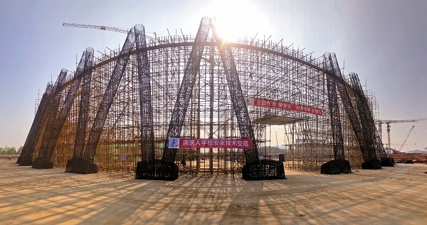 煙塔施工分公司湖南嶽陽電廠2×1000MW機組1号排煙冷卻塔人字柱混凝土正式澆築